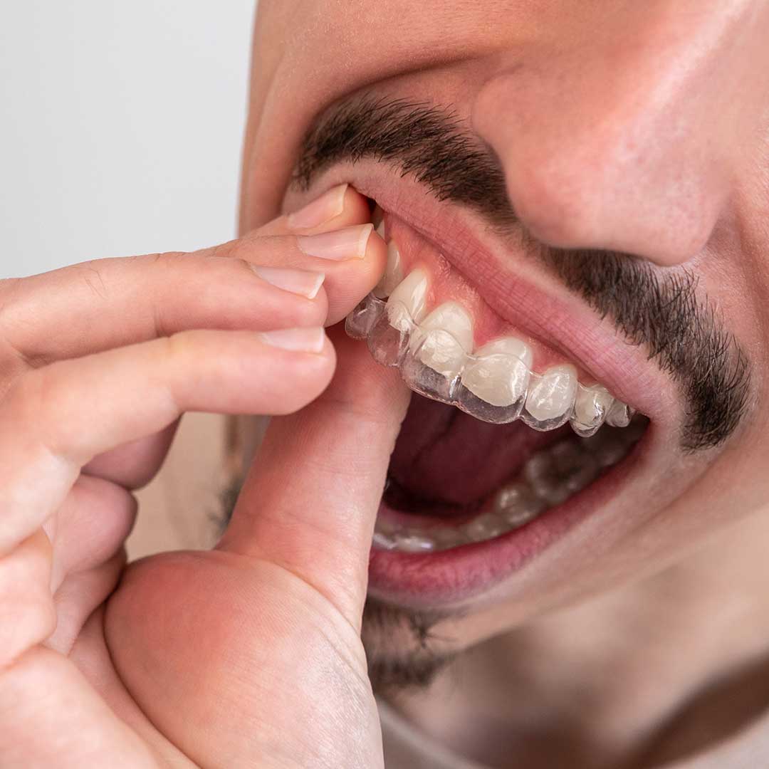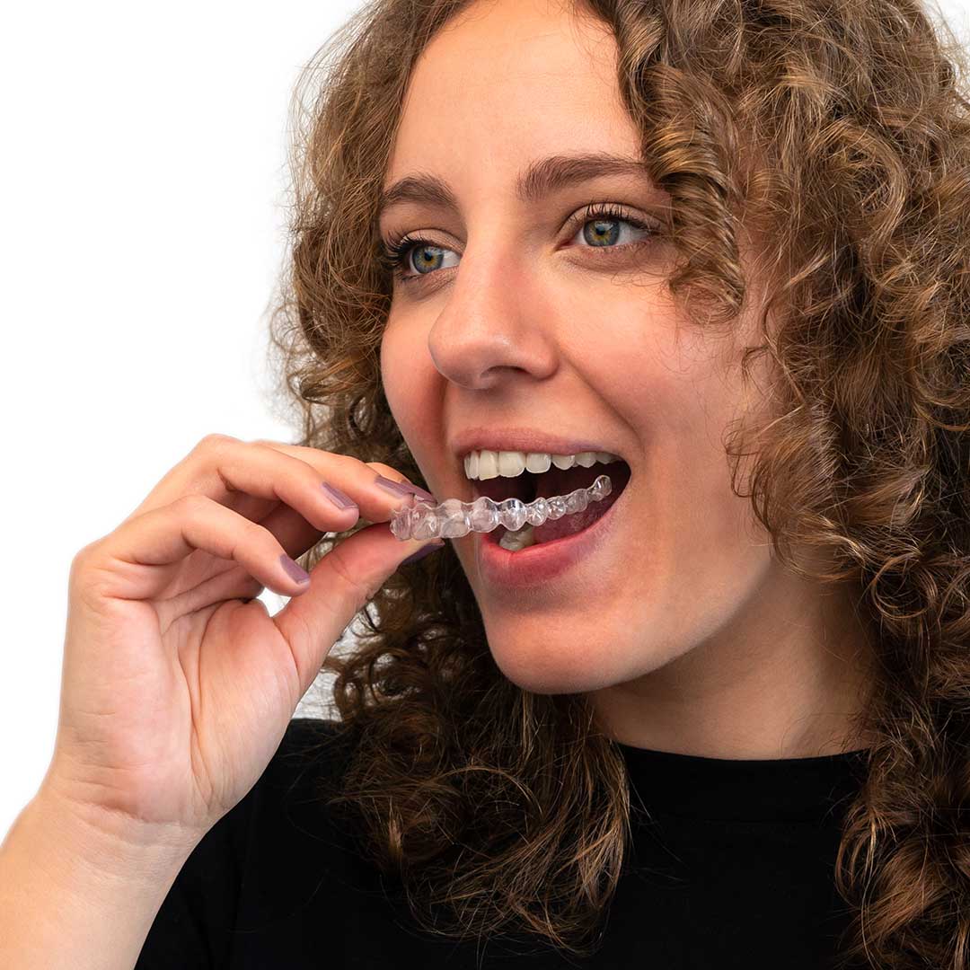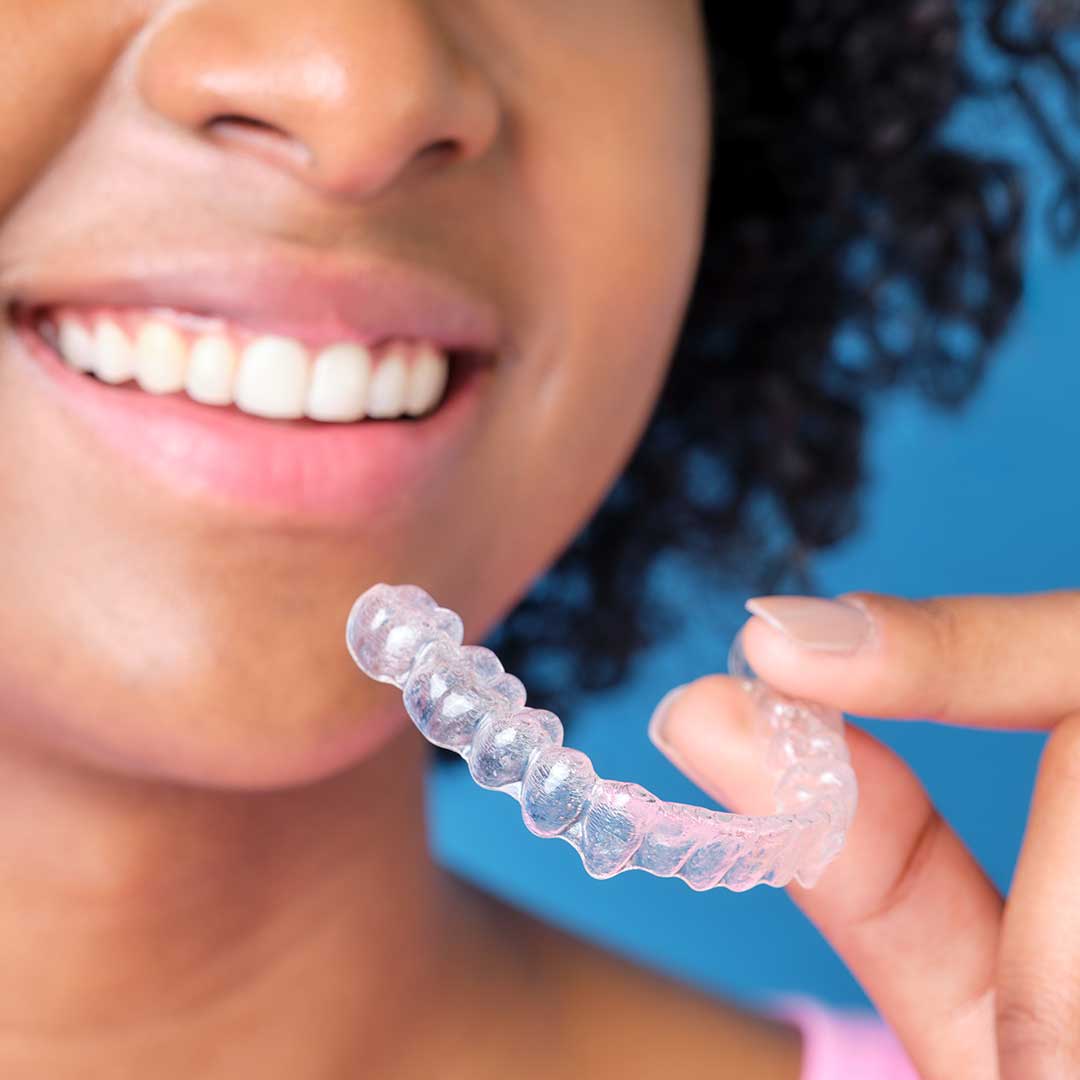 Spark Clear Aligners are custom-made, transparent trays that gently move your teeth into the desired position—without wires, brackets, or visible hardware. They're made from a patented TruGEN™ material that’s clearer, more comfortable, and stains less than other aligners. Each aligner is worn for about one to two weeks before switching to the next in the series.